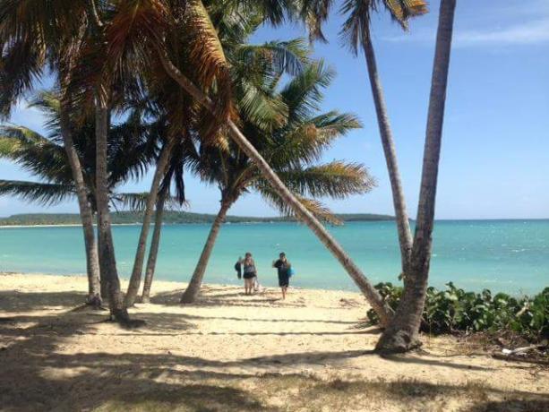 После завтрака к нашей базе подходил автобус и увозил всех на пляж, каждый день на новый! Так как на острове Вьекес имеется более 40-ка пляжей, нам удалось побывать только на нескольких из них, но все они очень красивые и разнообразные! Вообще остров Вьекес - один большой пляж и входит в 9-тку лучших Карибских островов и знаменит своими красивейшими пляжами. Называются они все по разному - пляж Солнечный залив, Красный пляж, Чёрный пляж, Коралловый пляж, Пальмовый пляж, Кактусовый пляж и др. На эти замечательные пляжи приезжают даже туристы с большого острова Сан-Хуан, так как здесь они лучше, чем на большом острове!