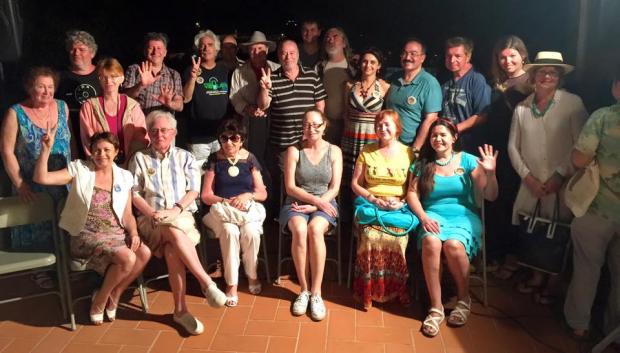 Затем выступил Петр Тютюник, он поприветствовал всех собравшихся, рассказал о наших планах и пригласил всех на нашу турбазу Монте Санто, где в течении недели продолжался наш фестиваль. Все речи произносились на двух языках - на английском и на испанском. На испанский язык переводила Ольга Филенко. Oнa приехала на фестиваль из Канады и прекрасно владеет 5-ю языками - русским, украинским, испанским, английским и французcким. Ольга очень харизматическая личность, обладающая яркой индивидуальностью и огромной внутренней энергией, которая притягивает к себе других людей и объединяет их. Ее личное обаяние, яркая запоминающаяся внешность, умение эмоционально говорить и владеть аудиторией сразу расположили к себе публику и дали положительный заряд всему фестивалю! Благодаря ей и прекрасному владению испанским языком, у нас не было никаких проблем с решением всех вопросов, связанных с переговорами с местными властями, с подписанием договоров об аренде вилл и турбаз, заказом экскурсий и транспорта для участников фестиваля. Ольга еще и талантливая поэтесса, oна пишет прекрасные стихи на русском, украинском и испанском языках. Она читала свои стихи на испанском языке на открытии фестиваля, и они были с успехом восприняты публикой!