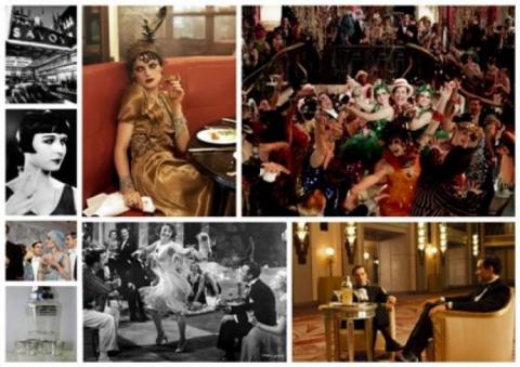 Для дам: вечерние платья, желательно перчатки, побольше блесток и стразов, элегантные прически или головные уборы, (желательно в ретро стиле), меховые накидки или боа, мундштуки для сигарет.